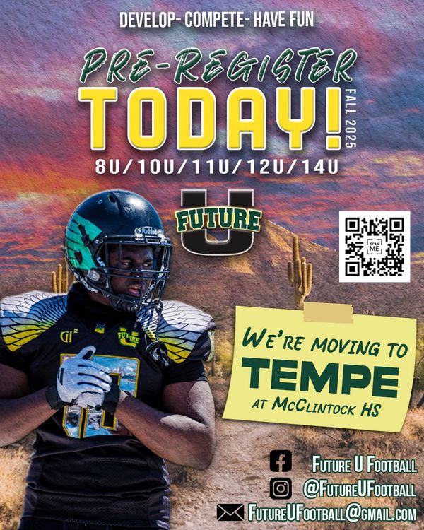 Future U Football is a football club based out of Phoenix, AZ and surrounding cities. Future U Football was created to bridge the gap between youth and high school football and prepare young athletes for that transition. We compete in both 7v7 and Tackle Football. All of our coaching staff has a minimum of high school level coaching experience and some with college/professional level experience- both playing and coaching.